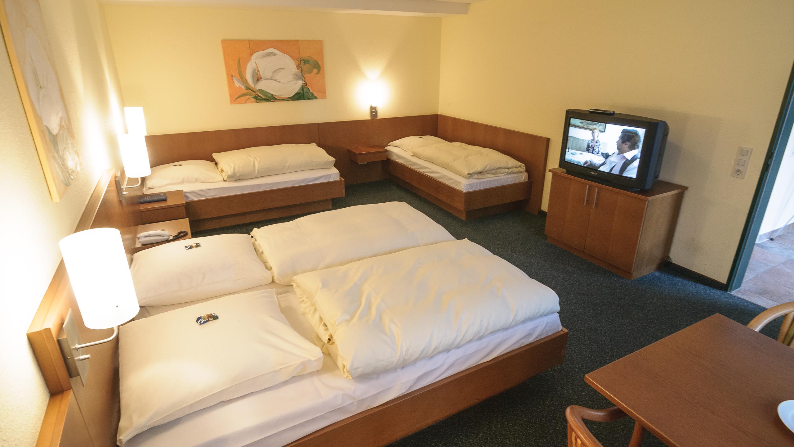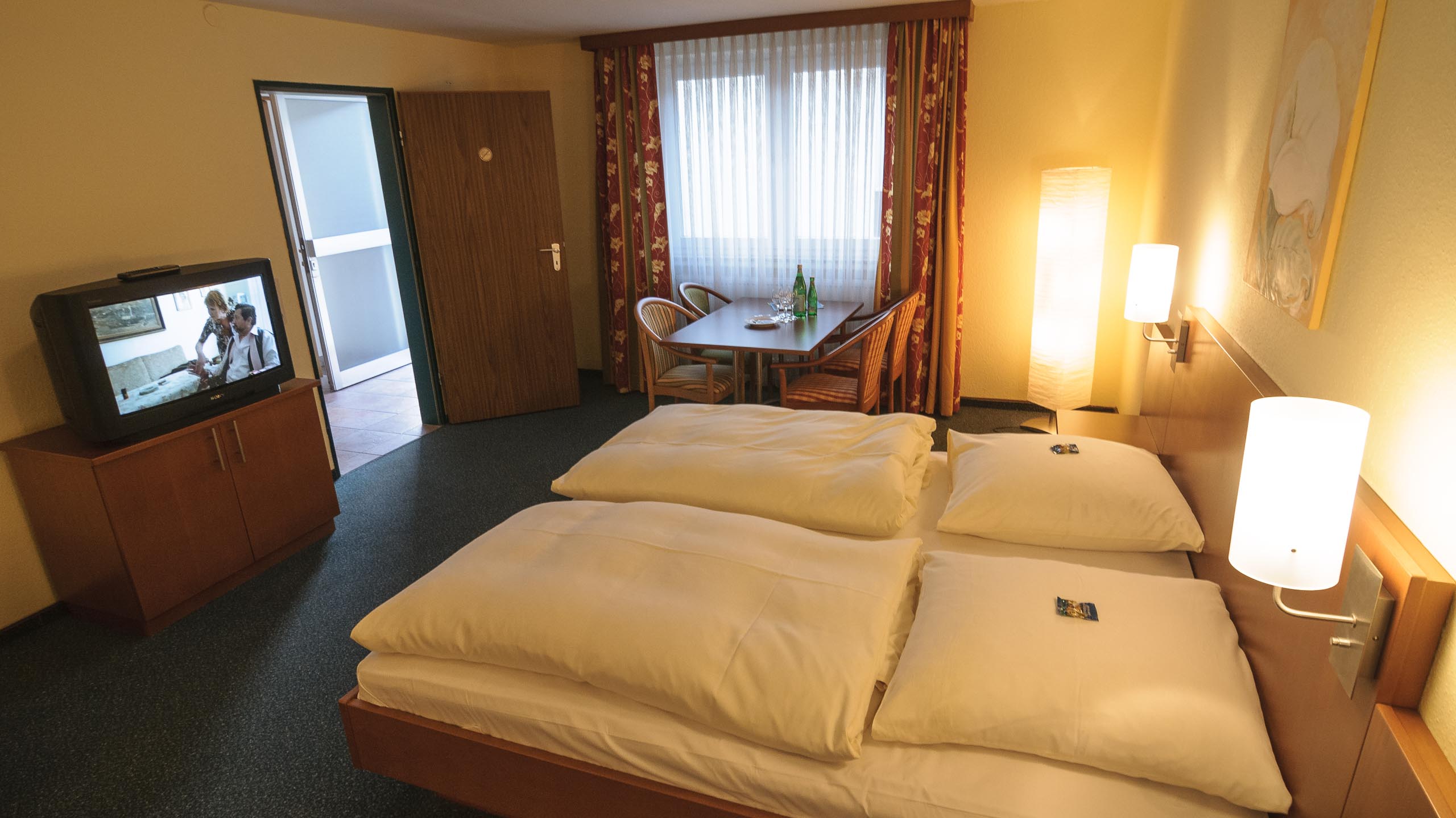 Die Matratzen sind alle 90×200 cm groß. Alle diese Hotelbetten haben eine angenehme Liegehöhe zum bequemen Aufstehen nach einer ruhigen Nacht. Für eine ruhige Nacht auf dem Zimmer sorgen die ruhige Lage ohne eine größere Straße in der Nähe und „Blind out“-Verdunklungsgardinen. Die Familienzimmer haben eine Minibar mit einer Getränkeauswahl und ein paar Knabbersachen.